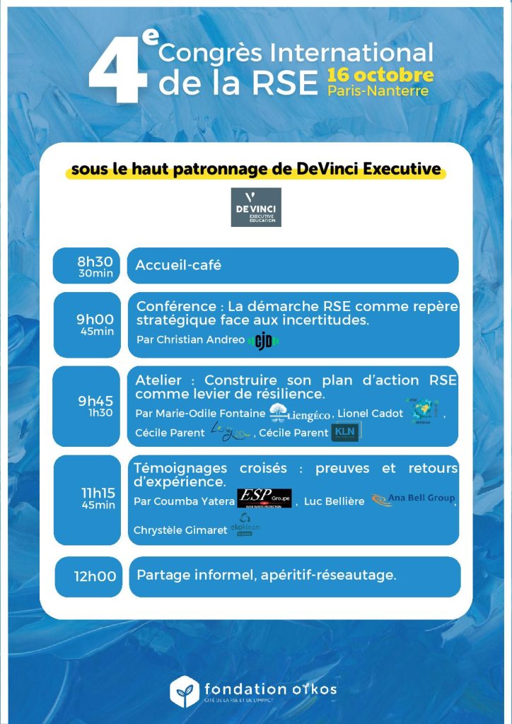 Atelier pratique : Construire son plan d’action RSE comme levier de résilience – jeudi 16 octobre à 9h45